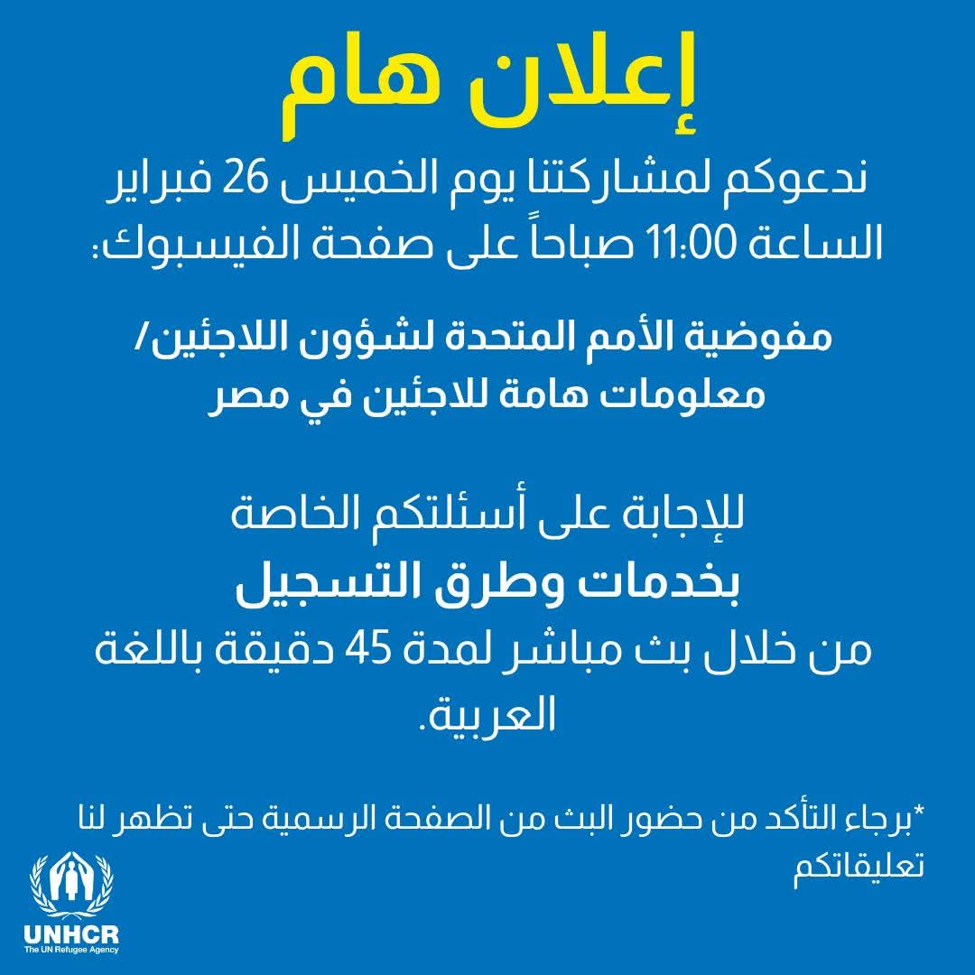 تنويه عاجل ومهم من المفوضية السامية لشؤون اللاجئين بمصر