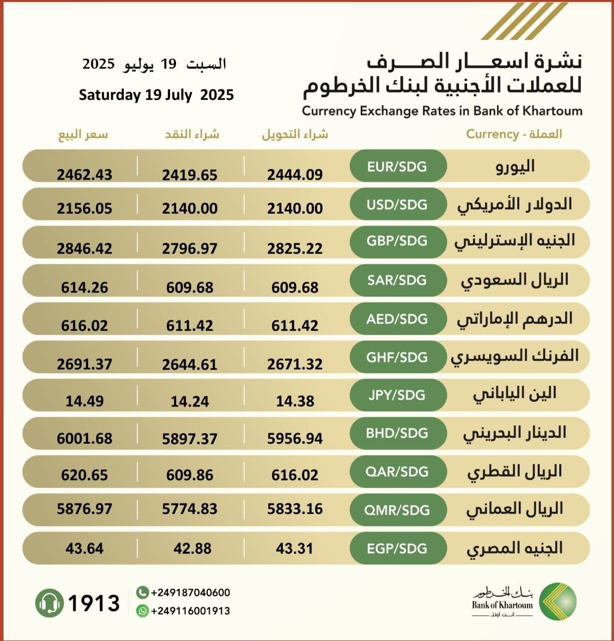بنك الخرطوم يُعلن نشرة السبت: تحركات محدودة والعملات الخليجية تتقدم