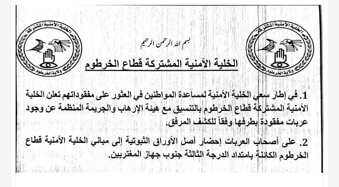 خبر سار لأصحاب العربات المنهوبة في الخرطوم